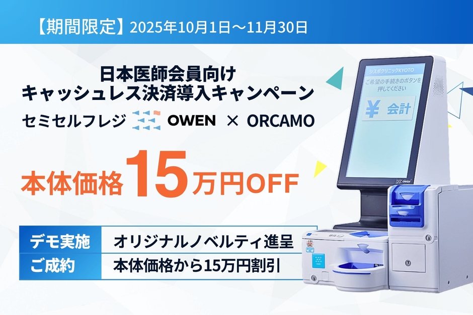 ORCA No.1(※)サポート事業所、および『OWEN』を運営するシスポ(京都府京都市、取締役:山中裕樹、中井貴士、梶谷正博)は、 2025年10月1日から11月30日までの期間限定で「日本医師会員向けキャッシュレスサービスキャッシュレス端末リニューアルキャンペーン」(https://owen-syspo.com/lp/renewal-campaign/)を実施いたします。