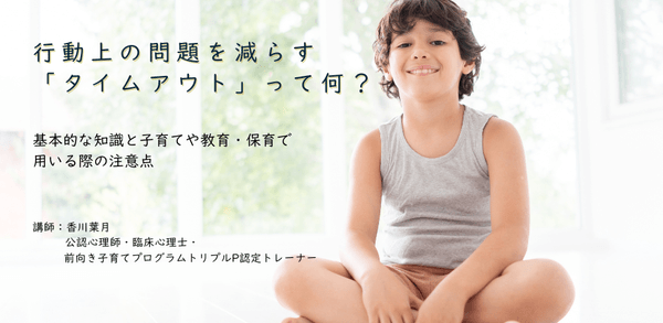 臨床心理士・公認心理師が運営する「子どものこころと発達ポジティブラボ」(所在地:兵庫県姫路市、代表:香川葉月)は、9月1日(日)にオンラインにて「行動上の問題を減らす『タイムアウト』ってなに? 〜基本的な知識と子育てや教育・保育で用いる際の注意点〜」のセミナーを開催します。