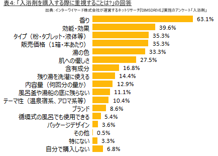 表4:「入浴剤を購入する際に重視することは?」の回答