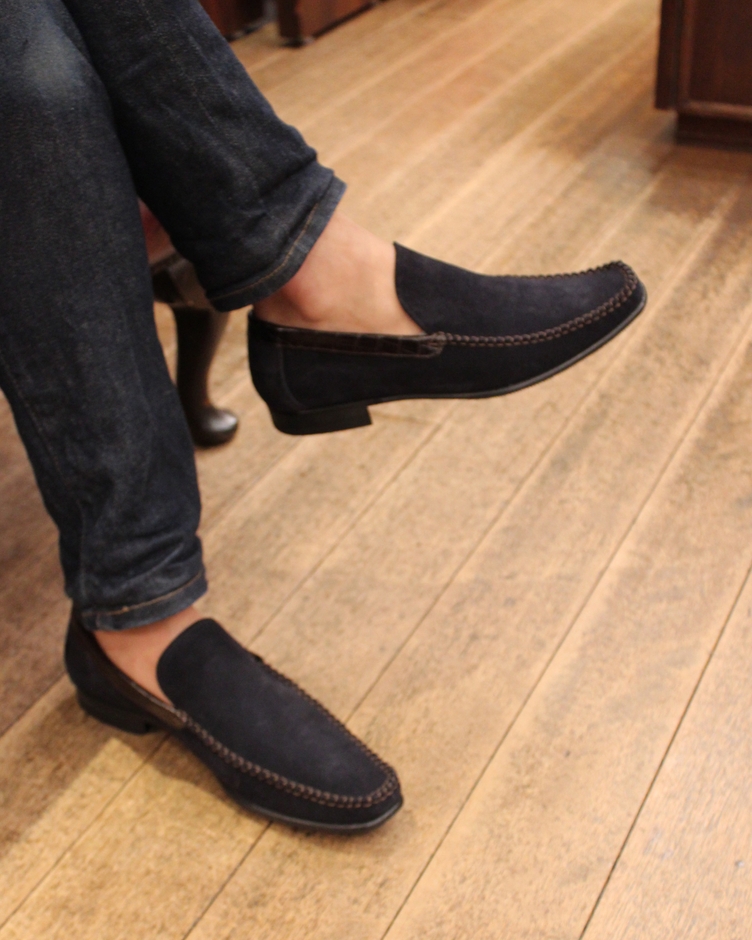 今回発売中の新作「Toscana Slip-on(トスカーナ スリッポン)9315SCO」は、スエードをベースにしたスリッポンローファーです。アッパーにはスエード革を、履き口周りはクロコダイル型押しの牛革を採用することでカジュアルスタイルでの幅広い場面に着用できる仕上がりにしました。