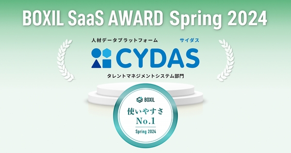 株式会社サイダス(本社:東京都港区、代表取締役:松田 晋、以下 サイダス)が提供する人材データプラットフォーム「CYDAS(サイダス)」が、スマートキャンプ株式会社(以下「スマートキャンプ」)が主催する「BOXIL SaaS AWARD Spring 2024」のタレントマネジメントシステム部門で「使いやすさNo.1」に選出されました。
