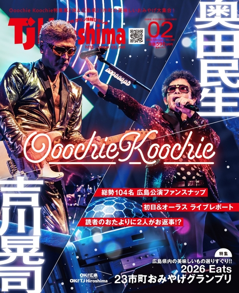 豪華二大企画。奥田民生×吉川晃司の奇跡のユニットOoochie Koochieで沸いた2025年を振り返る巻頭スペシャル企画を実現! 特集「2026Eats 23市町おみやげグランプリ」では、広島県内23市町で見つけた“美味しい”が大集合します。定番からレアアイテムまで勢揃いです~!