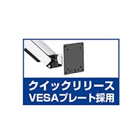 クイックリリースVESAプレ―ト(VESA規格100×100mm及び75×75mm)を採用しており、モニターを簡単に取り外し可能となっております。