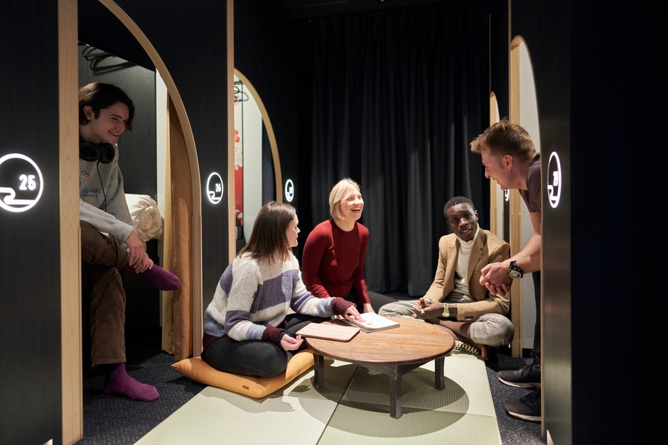 各キャビンは、お一人様はもちろん、グループでエリアを貸切ることもでき(最大12名)、ファミリーや女子旅などのご利用にもおすすめです。