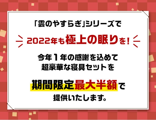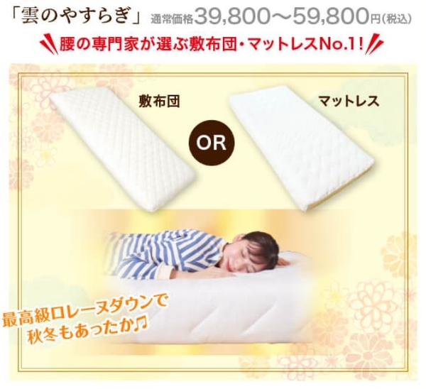 腰に優しい敷布団・マットレスNo1!人気の雲のやすらぎが「福袋BIGセール」を開催!