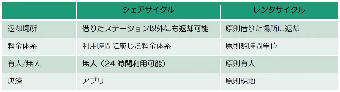 貸し出し・返却ができるシェアサイクルサービスで、ご利用にあたり、アプリを