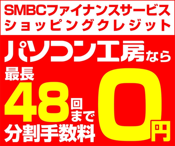 WEBでお申込できる便利なショッピングローン!SMBCファイナンスサービス ショッピングクレジットご利用のお客様に、最長48回まで分割支払い手数料をパソコン工房が負担します!欲しかった商品を自分のペースでご購入いただけます、ぜひご利用ください。