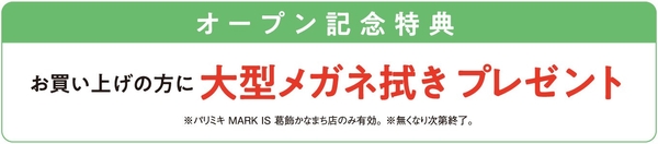 オープンを記念し、期間中税込¥10,000以上お買い上げの方には「大型メガネ拭き」をプレゼント!