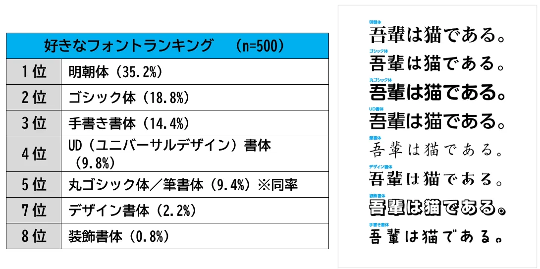 4.好きなフォントランキング1位「明朝体」2位「ゴシック体」3位「手書き書体」男女・年代別も!