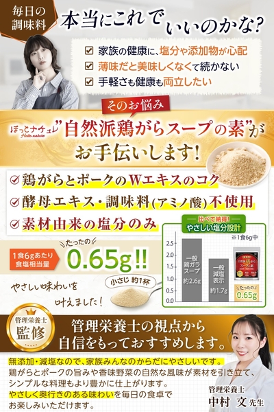“鶏ガラ”本来の旨味を追求した『ほっとナチュレ 自然派 鶏がらスープの素(中華風味)』を、