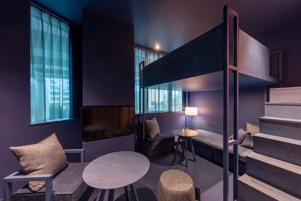 ゲストのスタイルに合わせて、彩り豊かな時間を提供する独創的なデザインのホテル。2名から5名まで宿泊できるゲストルームは、フロアごとに異なる2色で配色。訪れるたびに新鮮な驚きのある空間となっており、首都高や線路などの東京らしい眺望も間近に楽しむことができます。