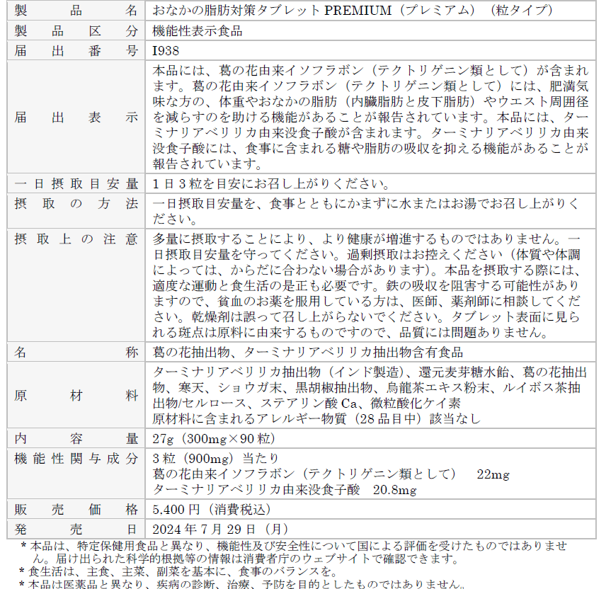 ◇『おなかの脂肪対策タブレットPREMIUM(粒タイプ)』とは?