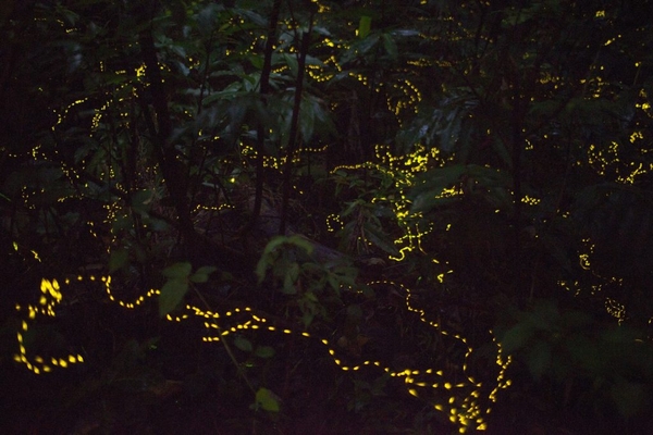 本土のホタルより、2か月以上早く光り始めるヤエヤマヒメボタルは、日没後の約1時間しか光る姿を見ることができず、その時間を過ぎると、ピタッと光るのを止めます。高い所は飛ばず、地面に近い所をゆっくり飛びますが、数の多い日は何万、何千匹のホタルが舞うので、まるで森の中に光の絨毯を一面に敷き詰めたかのような幻想的な空間となります。