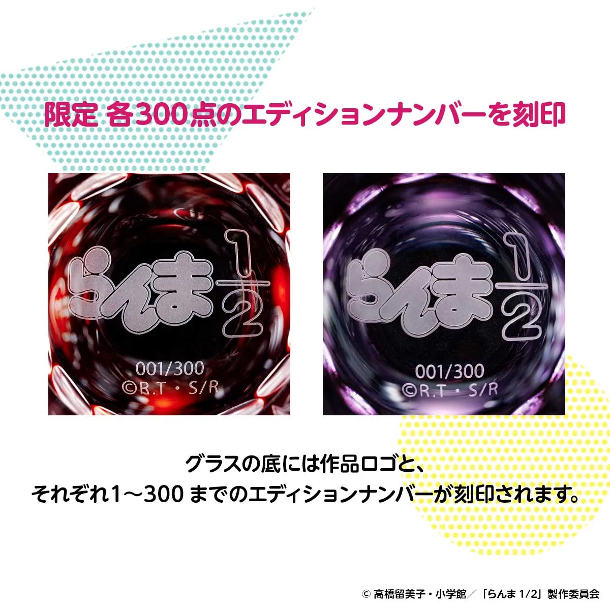 TVアニメ『らんま1/2』より、らんまとシャンプーの強さと美しさをちりばめた、日本の伝統的工芸品として知られるガラス工芸「江戸切子」のグラスが登場しました。