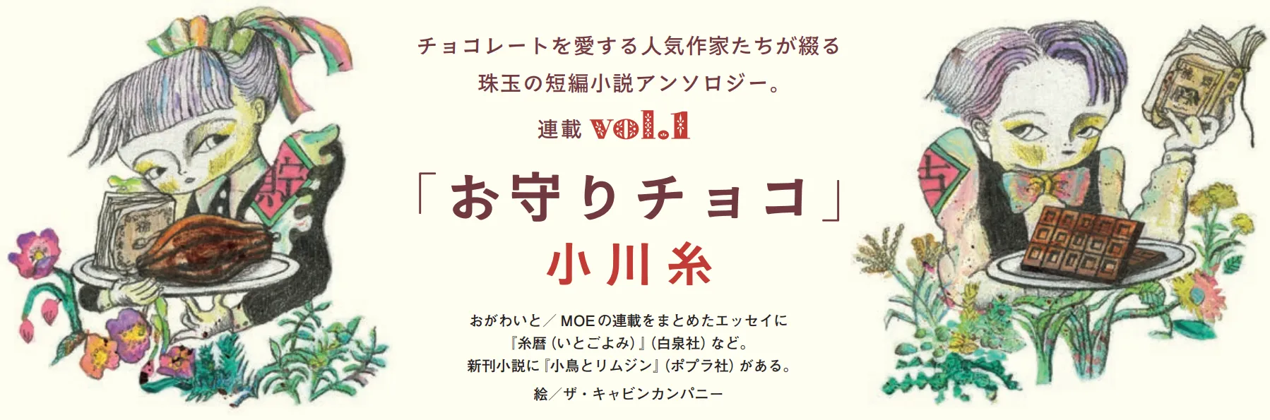 小川糸さん、江國香織さん、角田光代さん、凪良ゆうさん、千早茜さんの有名小説家5名が、「明治ミルクチョコレート」100周年を記念し、チョコレートを題材にした短編小説を書き下ろします。2025年7月発売の8月号を皮切りに月刊絵本雑誌MOE(白泉社)で公開します。また、全5エピソードをまとめたアンソロジー作品集を、2026年9月中旬頃に、同じく白泉社より出版予定です。8月号に掲載された連載第一弾は「食堂かたつむり」「小鳥とリムジン」などで知られる小川糸さんとのコラボレーションで、タイトルは「お守りチョコ」。少女が叔母との対話を通して自身の悩みや迷いと向き合い、内面的な成長を遂げる物語です。本リリースでは、この作品のあらすじを特別にご紹介。小川さんが生み出す世界観を少しだけお見せします。9月発売の10月号では、第二弾として「きらきらひかる」「冷静と情熱のあいだ Rosso」などで知られる江國香織さんによる作品も公開中です。第三弾は角田光代さん(11月発売12月号)の作品を掲載します。ご期待ください。