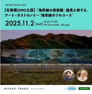 株式会社阪急交通社(大阪市北区梅田、代表取締役社長 酒井淳)と株式会社ナビタイムジャパン(東京都港区南青山、代表取締役社長 大西啓介)は、東北におけるブルーツーリズムの推進に向けて、宮城県石巻市雄勝町の海岸地域を目的地とする体験型ツアー【石巻圏DMO公認※】「海岸線の美術館」館長と旅する、アート×ガストロノミー“海岸線のフルコース”を企画しました。9月11日(木)から予約受付を開始します。