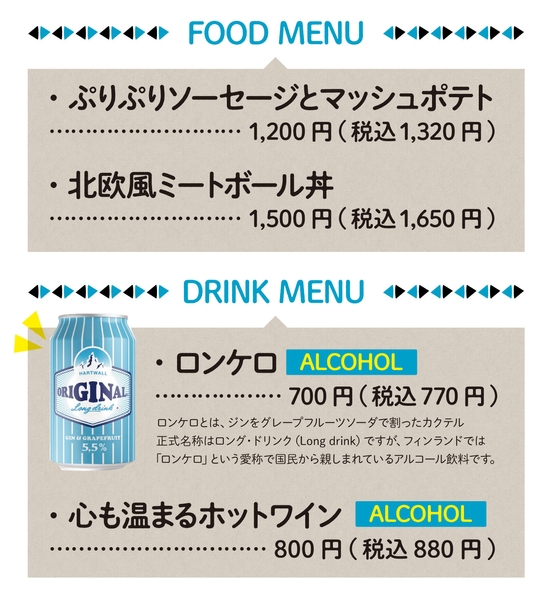 フィンランドのサウナドリンクと呼ばれる「ロンケロ」も販売いたします。ジンをグレープフルーツソーダで割ったカクテル。正式名称はロング・ドリンク(Long drink)ですが、フィンランドでは「ロンケロ」という愛称で