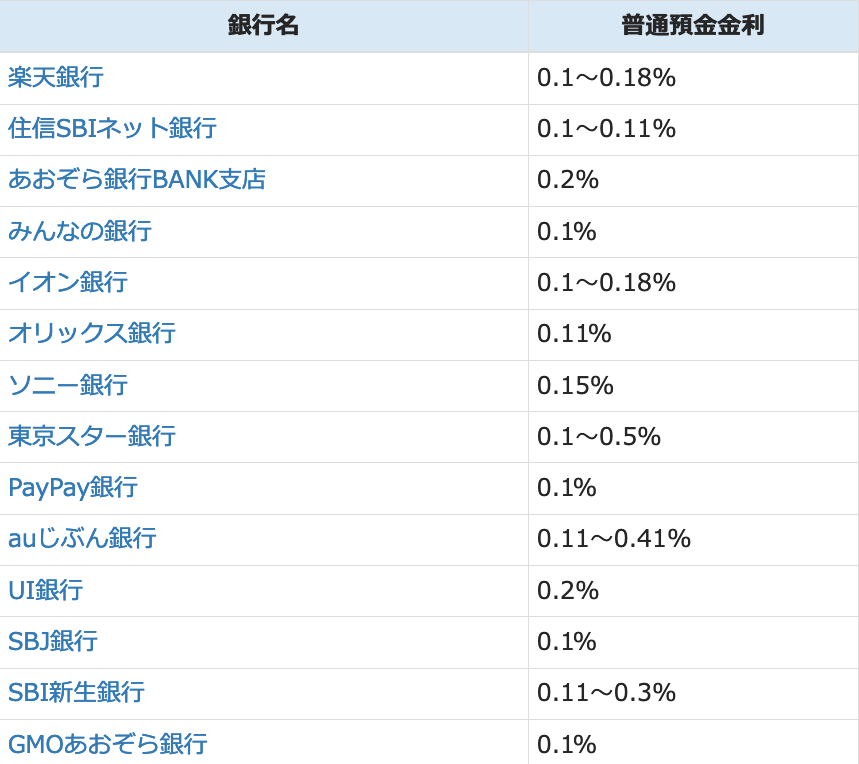 ネット銀行普通金利14社比較表【2024年10月】