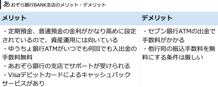 あおぞら銀行BANK支店のメリット・デメリット