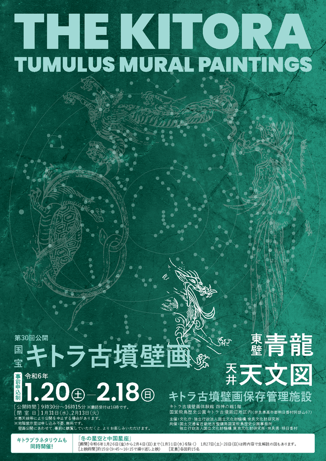 「国宝キトラ古墳壁画の公開(第30回)」事務局にお電話いただくか、事務局ホームページにて、定員に達していない日時からご応募ください。