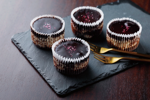 ①ケーキの表面を艶やかにコーティングし、華やかな見た目に仕上げた「グラサージュ」