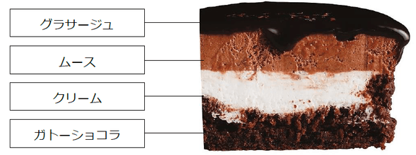 「グラサージュ」「ムース」「クリーム」「ガトーショコラ」の4層仕立ての味わいをお楽しみいただけます。