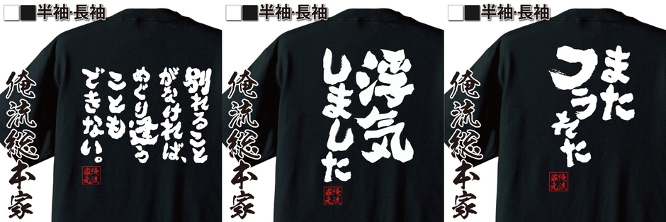 俺流総本家の語録Tシャツは、1万種類以上のデザインを取り揃えています。面白いものから感動的なものまで、多彩なデザインがあり、お客様一人ひとりの個性を引き立てる一枚を見つけることができます。カスタマイズ可能なデザインもあり、特別なイベントやギフトにも最適です。