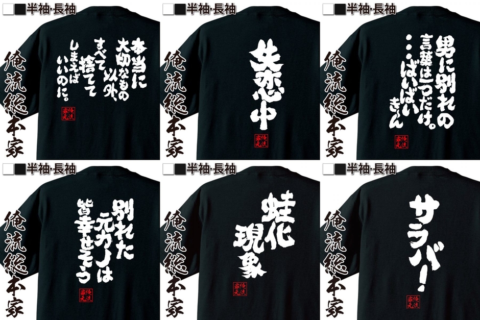 株式会社太陽(所在地:千葉県匝瑳市飯倉台28-11、代表取締役:片岡正徳)が展開する「おもしろTシャツの俺流総本家」では、9月14日(日)ホワイトデーから半年経ったこの日に女性が男性に別れを告げる日とされる「セプテンバーバレンタイン」にちなんで、別れの哀愁を背負うおもしろ語録Tシャツの期間限定セールを開催いたします。