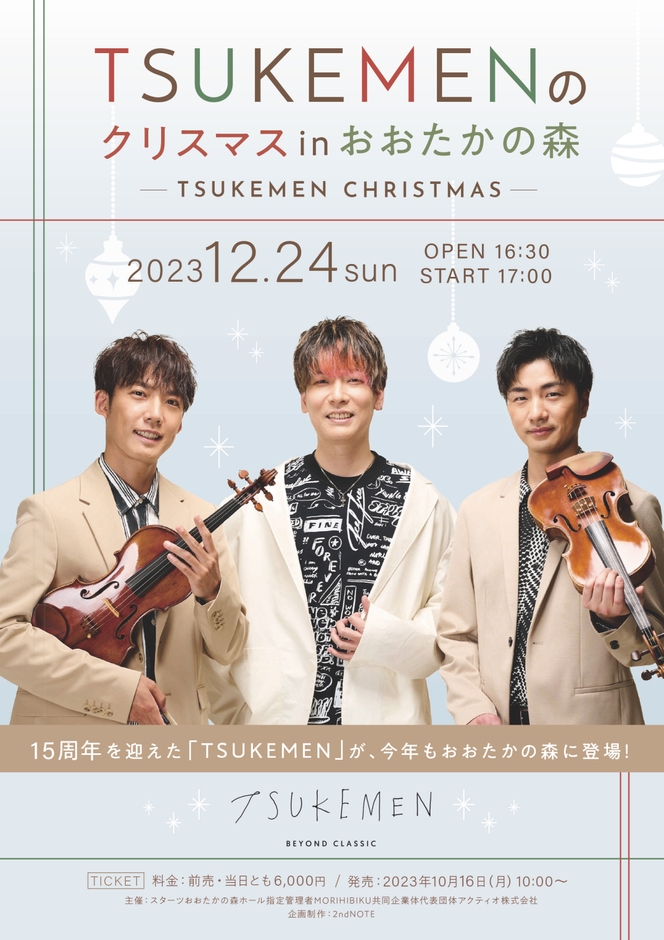 アクティオ株式会社主催、『TSUKEMENのクリスマスinおおたかの森』が2023年12月24日(日)にスターツおおたかの森ホール(千葉県流山市おおたかの森北1-2-1)にて上演されます。