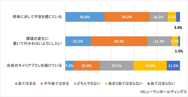 5.「将来に対して不安を感じている」「環境の変化に置いていかれないようにしたい」一方で、「自身のキャリアプランを描けている」のは少数