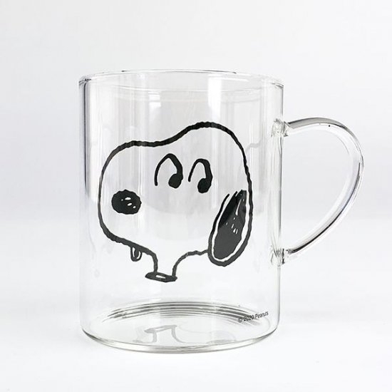 耐熱ガラスのマグもご紹介しちゃいます♪安定感のあるフォルムで、シンプルなスヌーピーのフェイスデザイン。耐熱性なので、温かい飲み物もOKです。