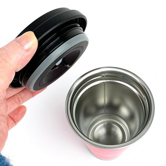 ブラックのフタは、スクリュー式なので安定感もあります。しっかり締めておけば、倒してしまっても飲み物がこぼれる心配がありません。