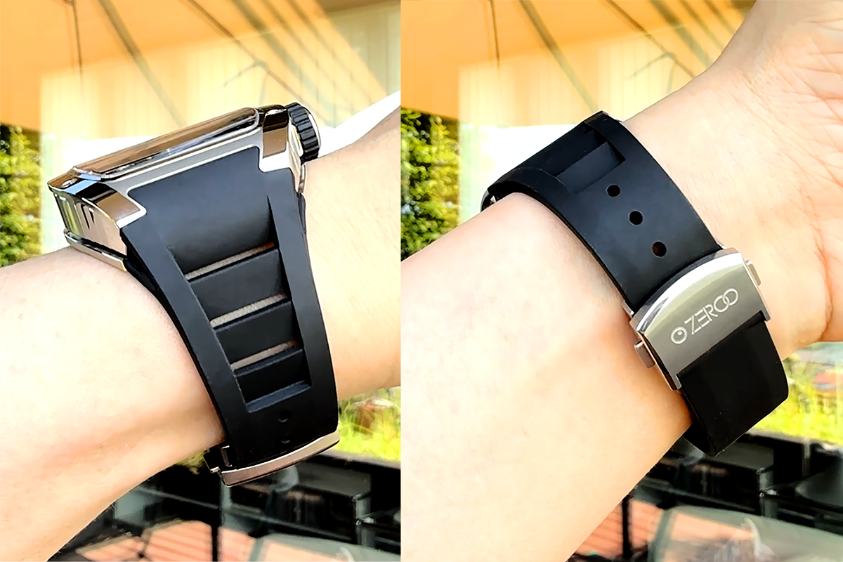 T10のベゼルはPolish(鏡面)とSatin(ヘアライン)の2種類を用意。Polish 2モデル、Satin 4モデルの計6タイプを展開します。ストラップには医療用にも使われるフッ素ラバーを採用し、通気性の高いベンチレーションタイプとソリッドタイプの2種類から選べます。