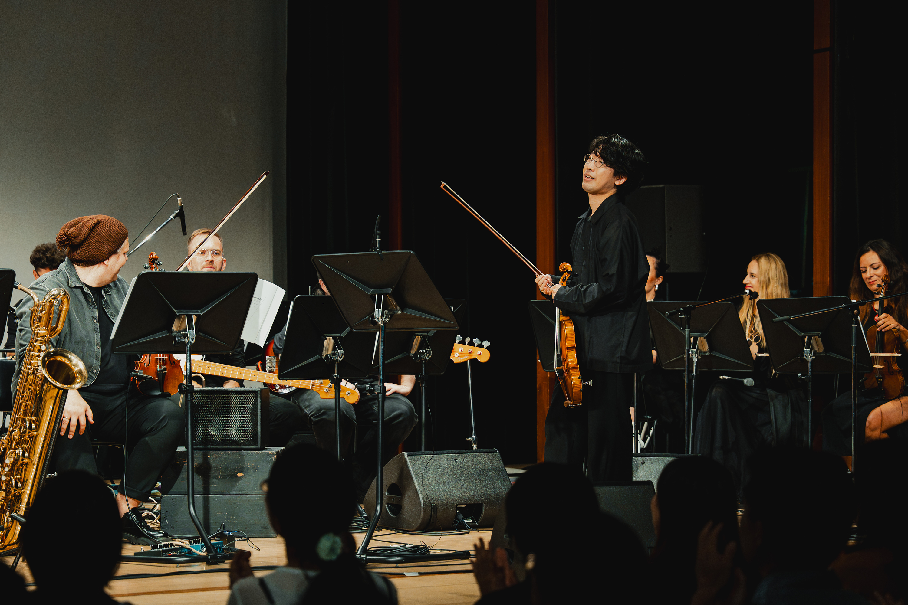 このイベントには、スペシャルゲストとして日本人バイオリニスト・石井智大が登場。石井は2024年にポーランドで開催された第6回ズビグニェフ・ザイフェルト国際ジャズヴァイオリンコンクールでアジア人として初の第3位に入賞した実力派であり、その繊細かつ情熱的な音色で融合し、会場を大きく沸かせた。