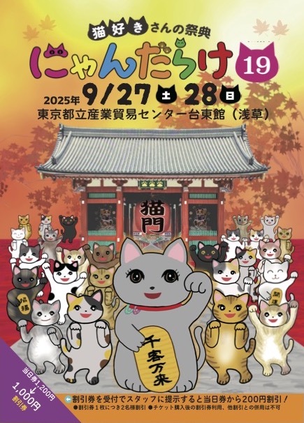 2025年9月27日(土)、28日(日)に、東京都立産業貿易センター台東館6階7階(半)にて、猫好きさんの祭典『にゃんだらけ19』が開催されます。