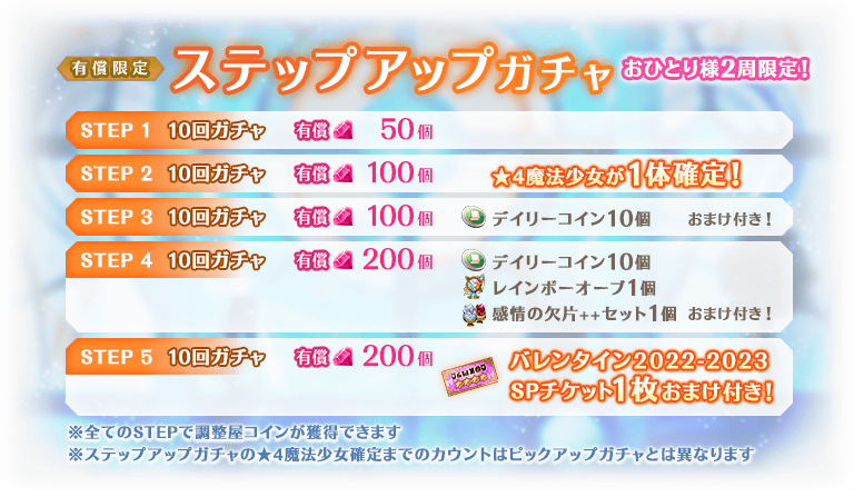 有償限定 ステップアップガチャ バレンタイン魔法少女2022-2023編