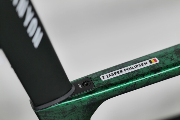 ヤスペル・フィリプセンが勝利を飾った翌日第2ステージで使用したのが、本リリース冒頭のマイヨジョーヌ仕様。さらに第3ステージはスプリント賞マイヨヴェール仕様のアートワークで出走。どちらも選手のための特別仕様となり市販はありませんが、MyCanyon「カリーナ」アートワークの手押しスタンピングプロセス技法が用いられています。