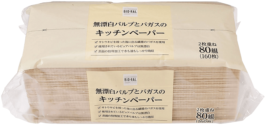 BIO-RAL 無漂白パルプとバガスのキッチンペーパー
