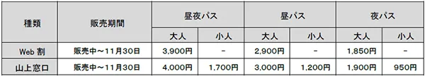 【料金】上記、夜パスまたは昼夜パスのとおり