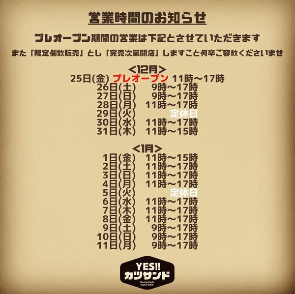 (プレオープン期間は限定個数販売とし完売次第閉店となりますこと何卒ご容赦くださいませ)