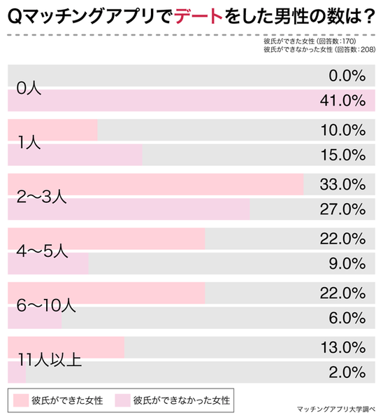 そして、アンケート結果では、恋人ができた男性の方がマッチング人数が多くなっています。