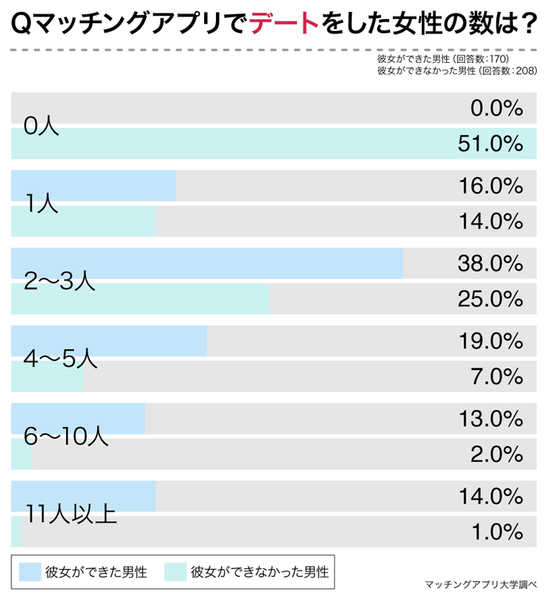 この仮説であれば、実際にデートをした人数が極端に少なくなっているのも納得できますね。