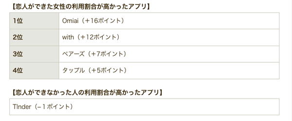 恋人ができた女性とできなかった女性で、利用アプリにどのような差があるかも調べました。