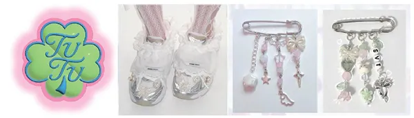 お客様のオーダーに合わせてミシンを使って創作するなど、足元を楽しむオリジナルのファッションアイテムやアクセサリーを提案販売します。