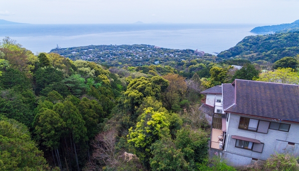 爽やかな海風が心和ませる高台の地形を生かした全室オーシャンビューの別荘。1階洋室は10畳大で、2階は6畳の和室に約15畳のリビング・ダイニングとバルコニーが続き、大人数でものんびりくつろげる空間。効能豊かな温泉が24時間使用可能。出窓からは相模湾の眺望も。