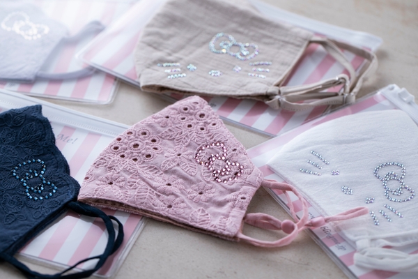 ハローキティの顔型やハローキティのリボン型がクリスタルであしらわれた、キラキラ輝くマスクやバッジ、ステッカーなど約50点の商品を販売いたします。可愛くおしゃれな商品をぜひお買い求めください。