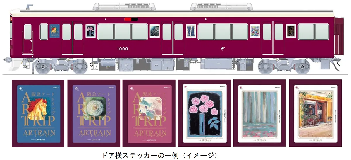 本イベントでは、アート作品で彩った特別列車「ARTRAIN(アートレイン)」を神戸線で運行します。同列車の車内外には、ライフデザイン阪急阪神が運営する絵画の売買やシェア(貸し借り)ができるWEBプラットフォームサービス「ARTELIER(アートリエ)」で取り扱う作品のステッカーやポスターを掲出するほか、オリジナルヘッドマークも装着します。また、より多くのアート作品に触れていただけるよう、中吊りポスターについては前期(9月26日~10月31日)と後期(11月1日~11月28日)の期間でテーマを変えて展示替えを予定しており、異なる作品のポスターを掲出します。これらに加えて、顔出しアートやトリックアートが楽しめるフォトスポットを大阪梅田駅と西宮北口駅に設置するほか、神戸線沿線の美術館・博物館(アートスポット)と当社最寄駅に設置しているスタンプの両方を集めていただいた方に、各施設のオリジナルステッカーをプレゼントするスタンプラリーも実施します。