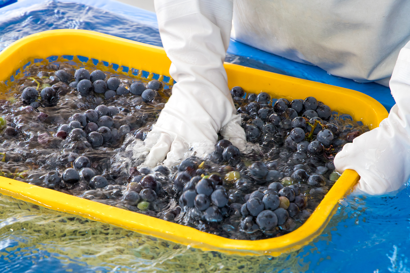 赤ぶどうの仕込みの準備風景