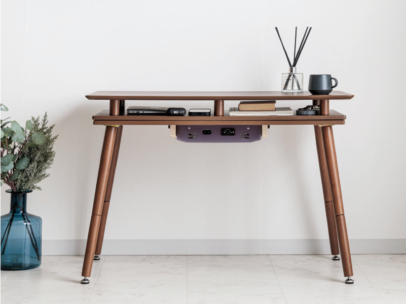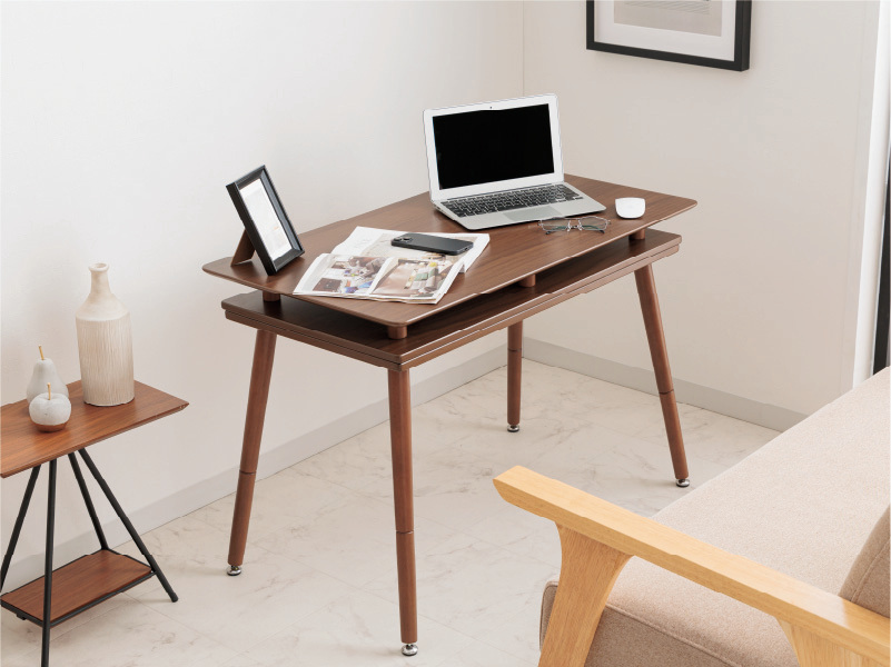 本製品はインテリアにも調和する洗練されたデザインで、一年を通じてリビングの主役としてお使いいただけます。付属の継脚(高さ20cm)を取り付けると、ソファに座った際にちょうど良い高さでパソコン作業や食事にも使えるセンターテーブルとして使用でき、継脚を外せば、床に座ってゆったりとくつろげるローテーブルに早変わり。ロースタイルにこたつ布団をかけてソファを背にすれば、暖かいフロアライフのベストポジションが完成します。