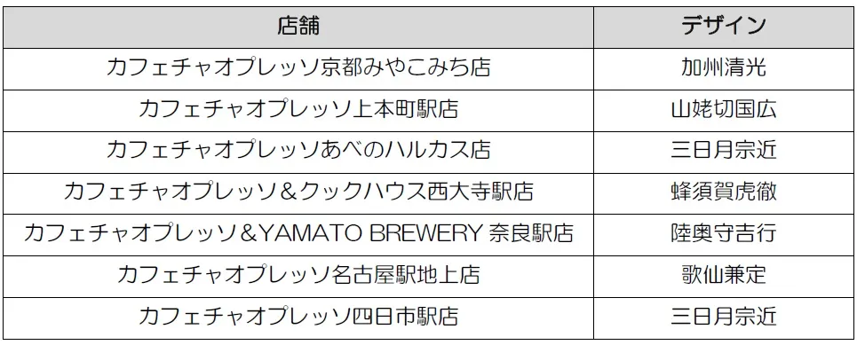 「CAFFE CIAO PRESSO(カフェチャオプレッソ)」にて「御伴散歩 刀剣男士」と近鉄電車のイラストをあしらったコラボカプチーノを発売します。